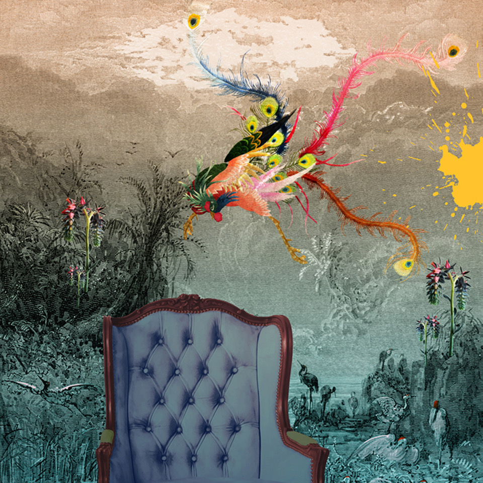 We work from a digital palette of photographs that we deconstruct in Photoshop, mixed with scanned in painted artwork and graphics created in Illustrator.