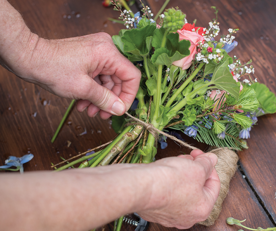 Making posies is a really helpful chapter on how to create a posy from starting with the sentiment, how to actually create it using focal, complementary, line flowers and herbs, or other greenery. There is also a step-by-step guide to putting it all together plus suggestions for creating a special tag to accompany the posy.